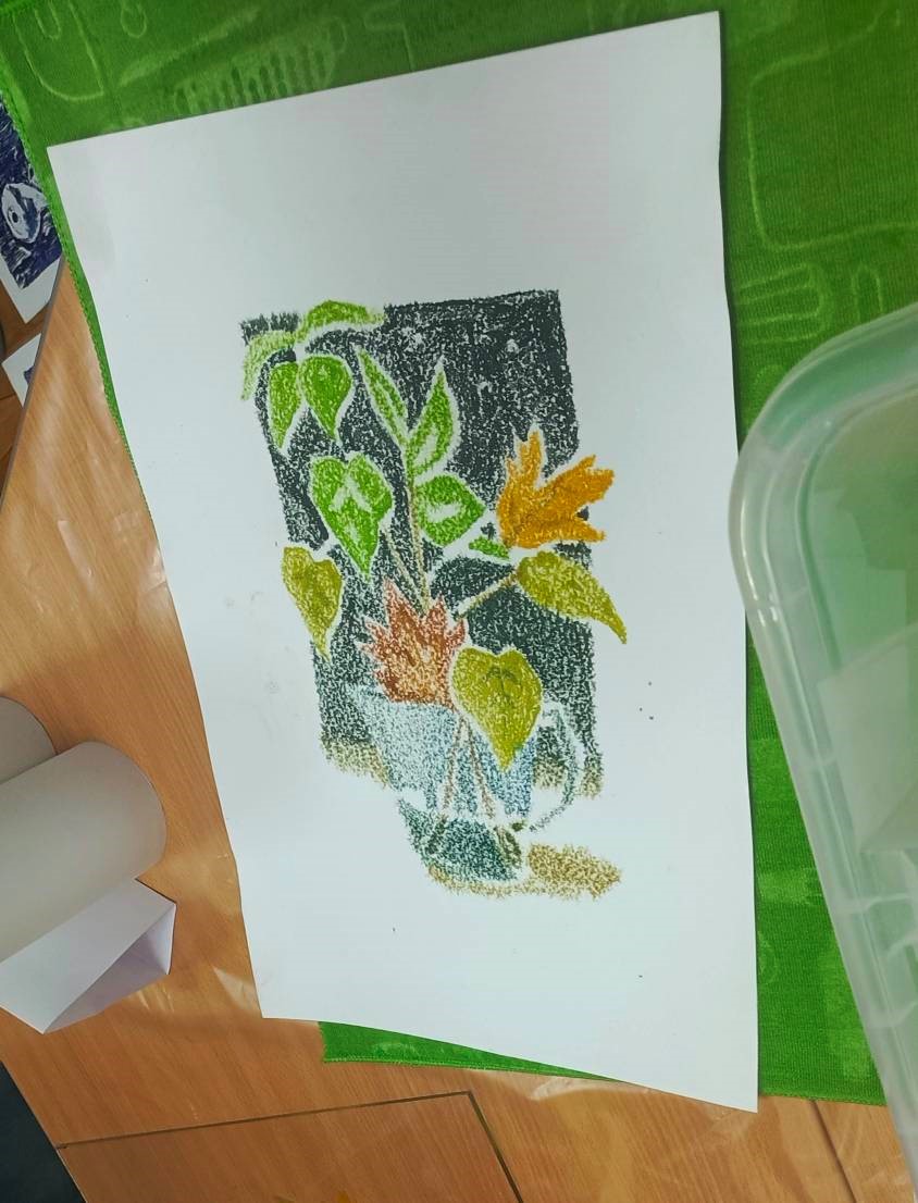 Особое внимание было уделено монотипии – уникальной технике, позволяющей создавать неповторимые отпечатки, оттиски на разных материалах. Мастер-класс по монотипии маслом провела известный художник Серова Елена Александровна. Участники под ее чутким руководством исследовали возможности масляных красок в этой технике, добиваясь выразительных текстур и глубоких цветовых переходов, с различными эффектами.