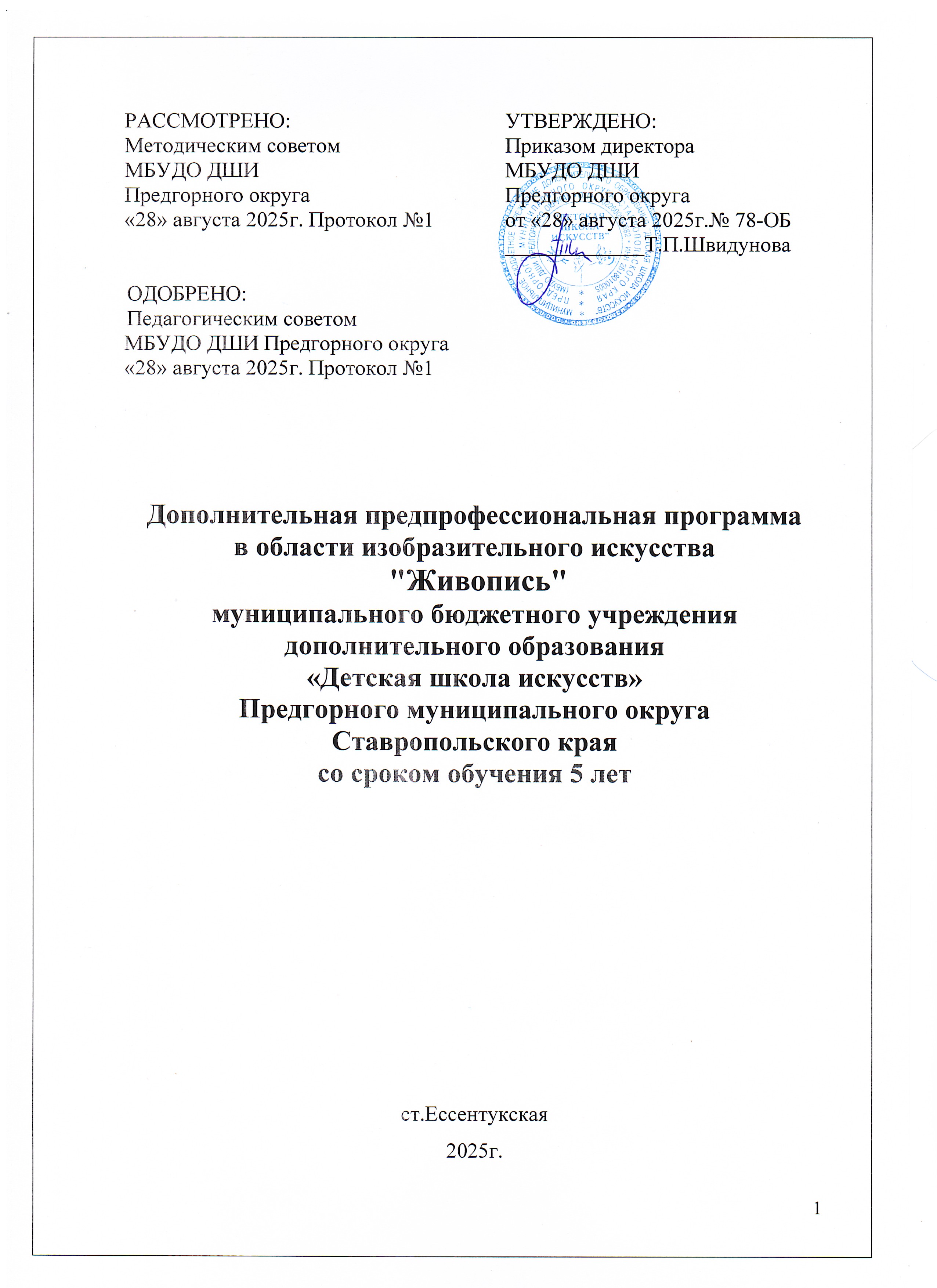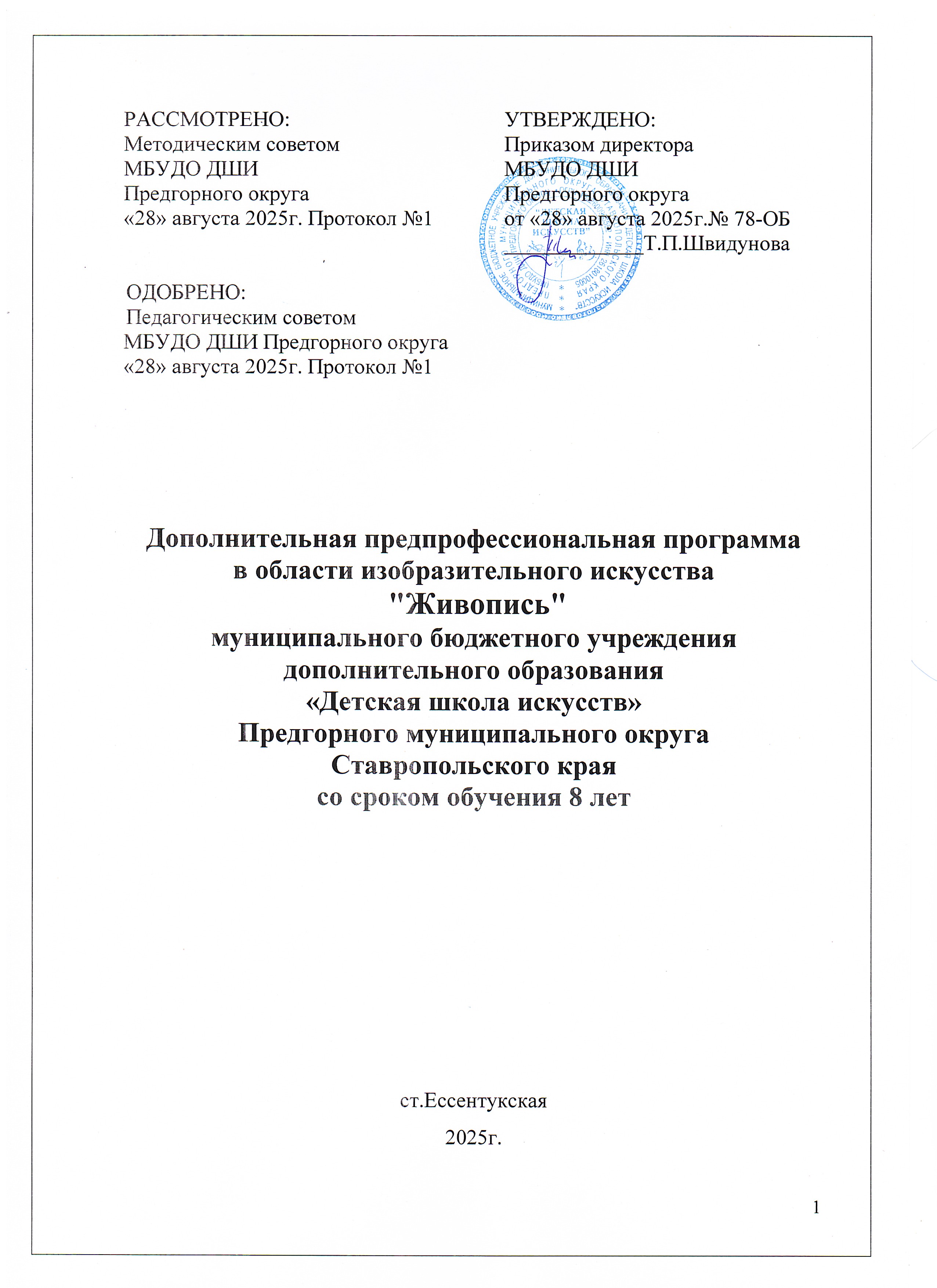 Титульный лист дополнительной предпрофессиональной программы в области изобразительного искусства "Живопись" со сроком обучения 8 лет