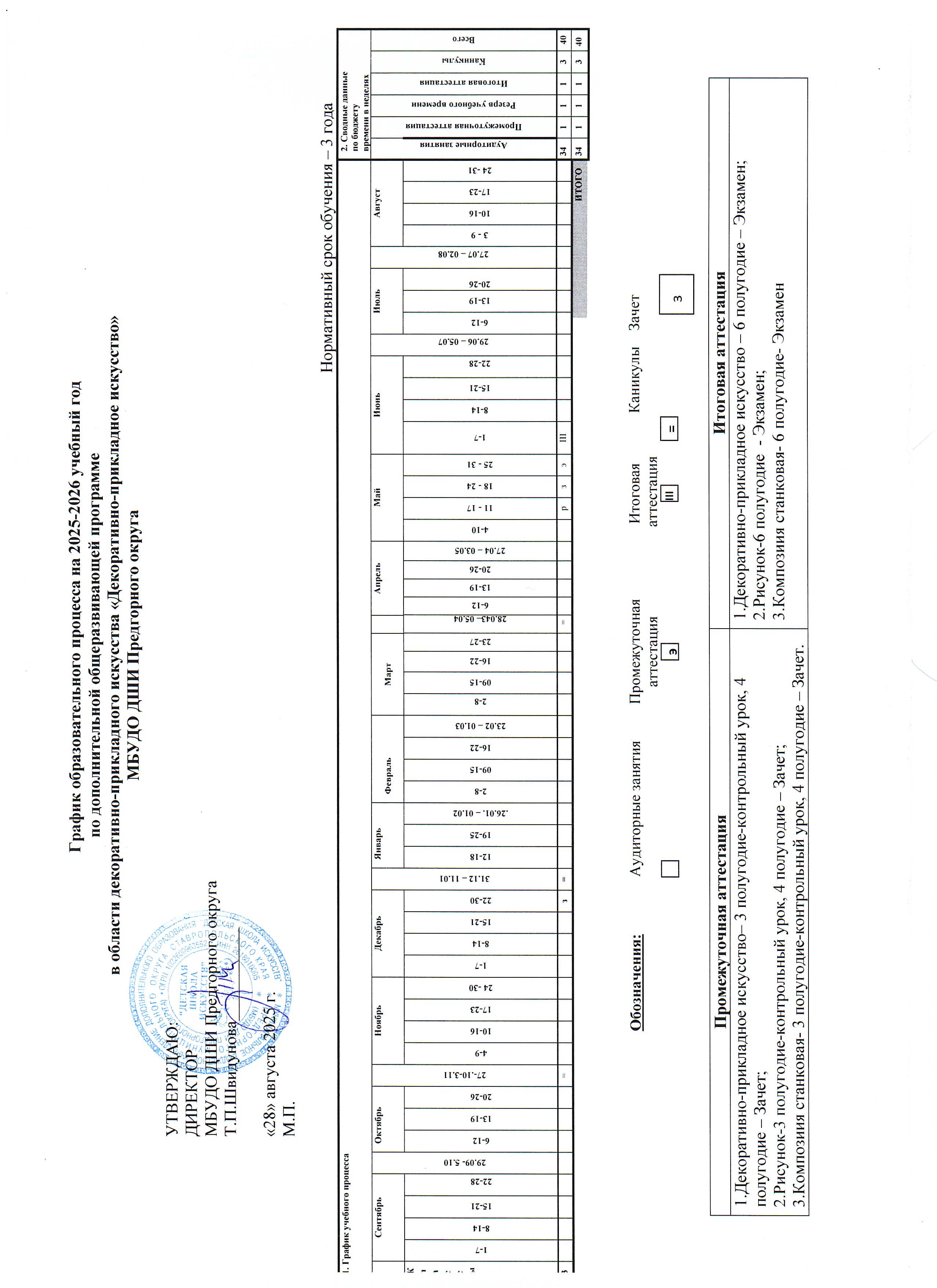 График образовательного процесса дополнительной общеразвивающей программы в области изобразительного искусства "Основы живописи"