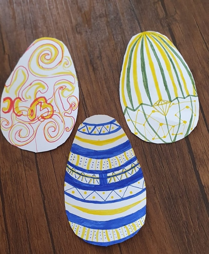 2 класс, преподавателя Клочковой Татьяны Сергеевны, выполняли работы в графической технике, они расписывали шаблоны пасхальных яиц ярким фломастерами.