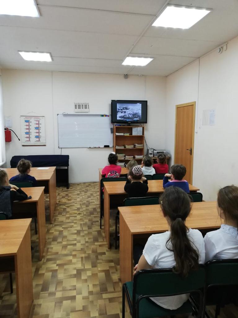 С большим интересом дети просмотрели видео-ролик «Сорванный Эдельвейс». По завершению просмотра Дегтярева Елена Петровна заместитель директора по методической работе провела обсуждение и небольшую викторину с учащимися по теме освобождения Таманского полуострова, которым завершилась битва за Кавказ.