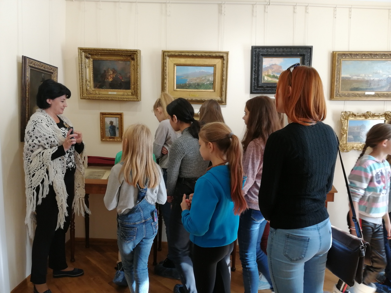 Экскурсию проводила Гардиенко Ирина Петровна, человек влюбленный в свое дело, отлично знающий историю жизни Ярошенко и его творческий путь. Экскурсия была интересной и увлекательной от начала и до конца, она напоминала беседу в кругу родных и близких. Так тепло и живо преподносился материал.