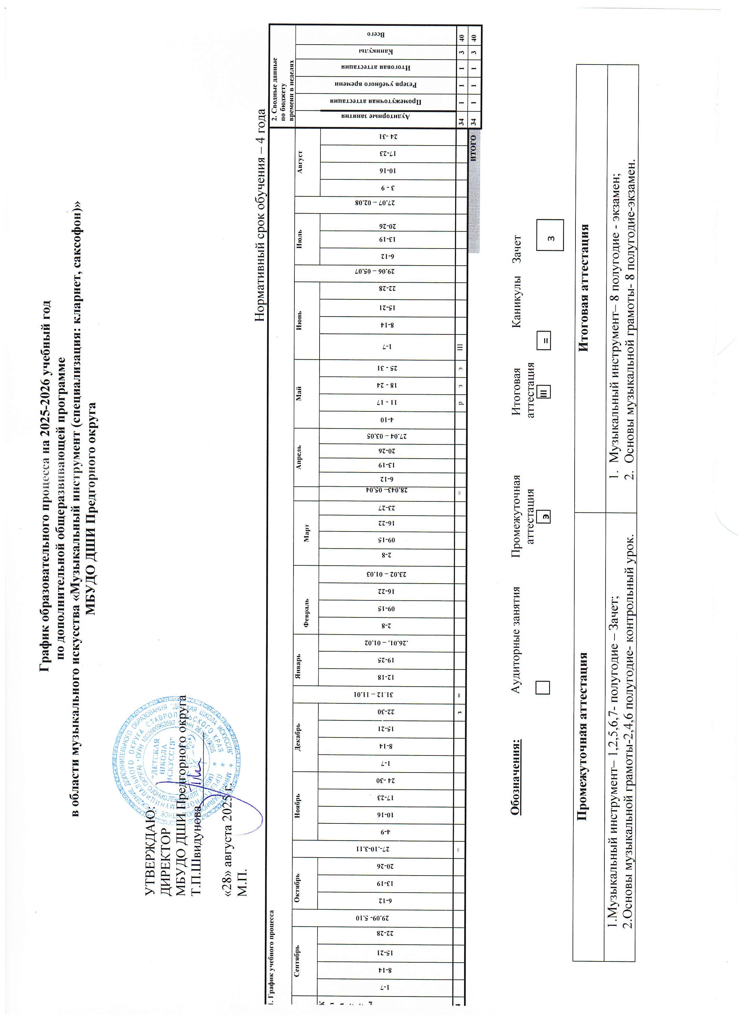 График образовательного процесса по дополнительной общеразвивающей программе в области музыкального искусства «Музыкальный инструмент» (специализация кларнет, саксофон)
