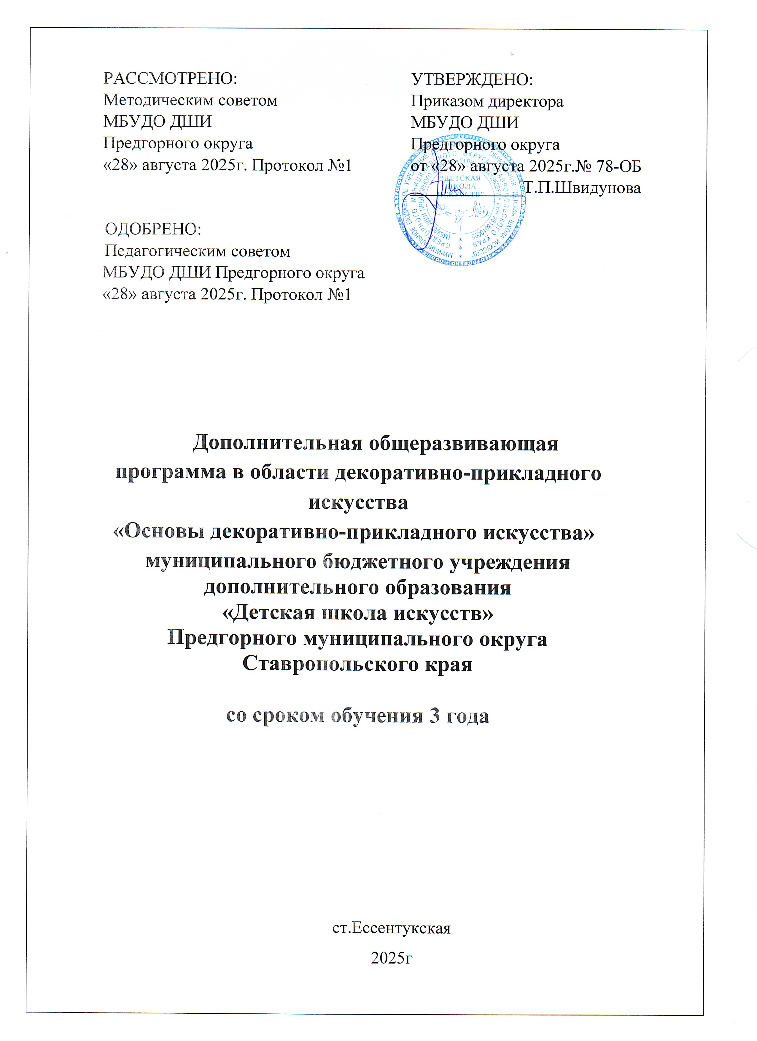 Дополнительная общеразвивающая программа в области изобразительного искусства "Декоративно-прикладное искусство" муниципального бюджетного учреждения дополнительного образования «Детская школа искусств» Предгорного округа со сроком обучения 3 года
