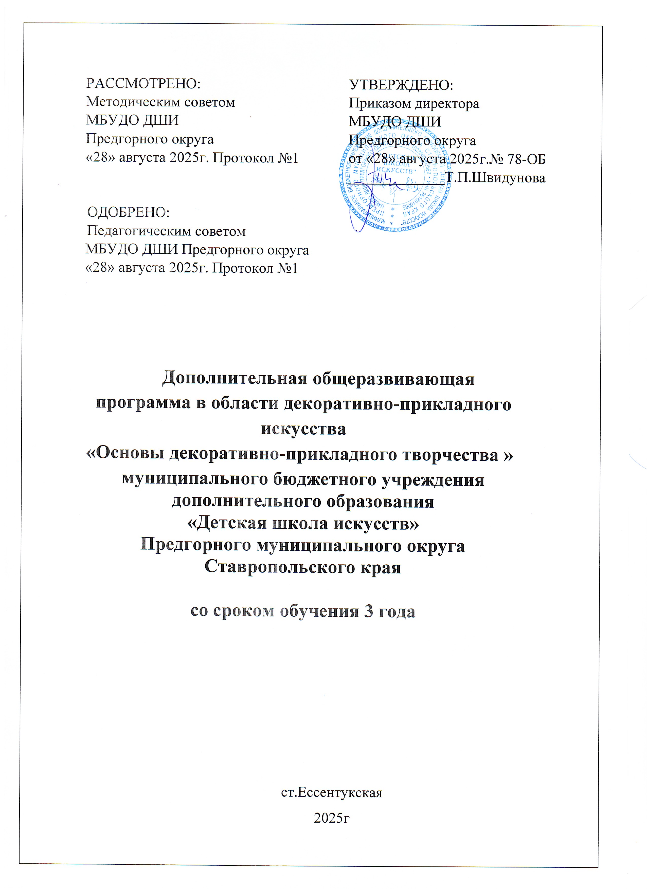 Дополнительная общеразвивающая программа в области изобразительного искусства " Основы декоративно-прикладного творчества" муниципального бюджетного учреждения дополнительного образования «Детская школа искусств» Предгорного округа со сроком обучения 3 года