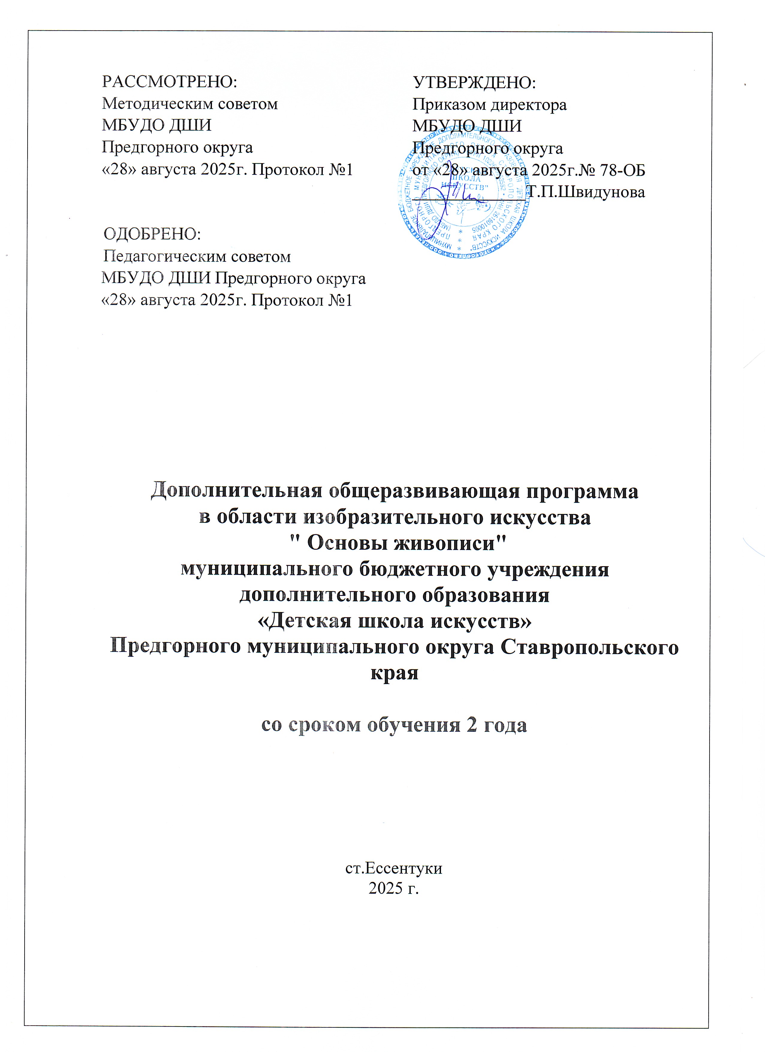 Дополнительная общеразвивающая программа в области изобразительного искусства "Основы живописи" муниципального бюджетного учреждения дополнительного образования «Детская школа искусств» Предгорного округа со сроком обучения 2 года
