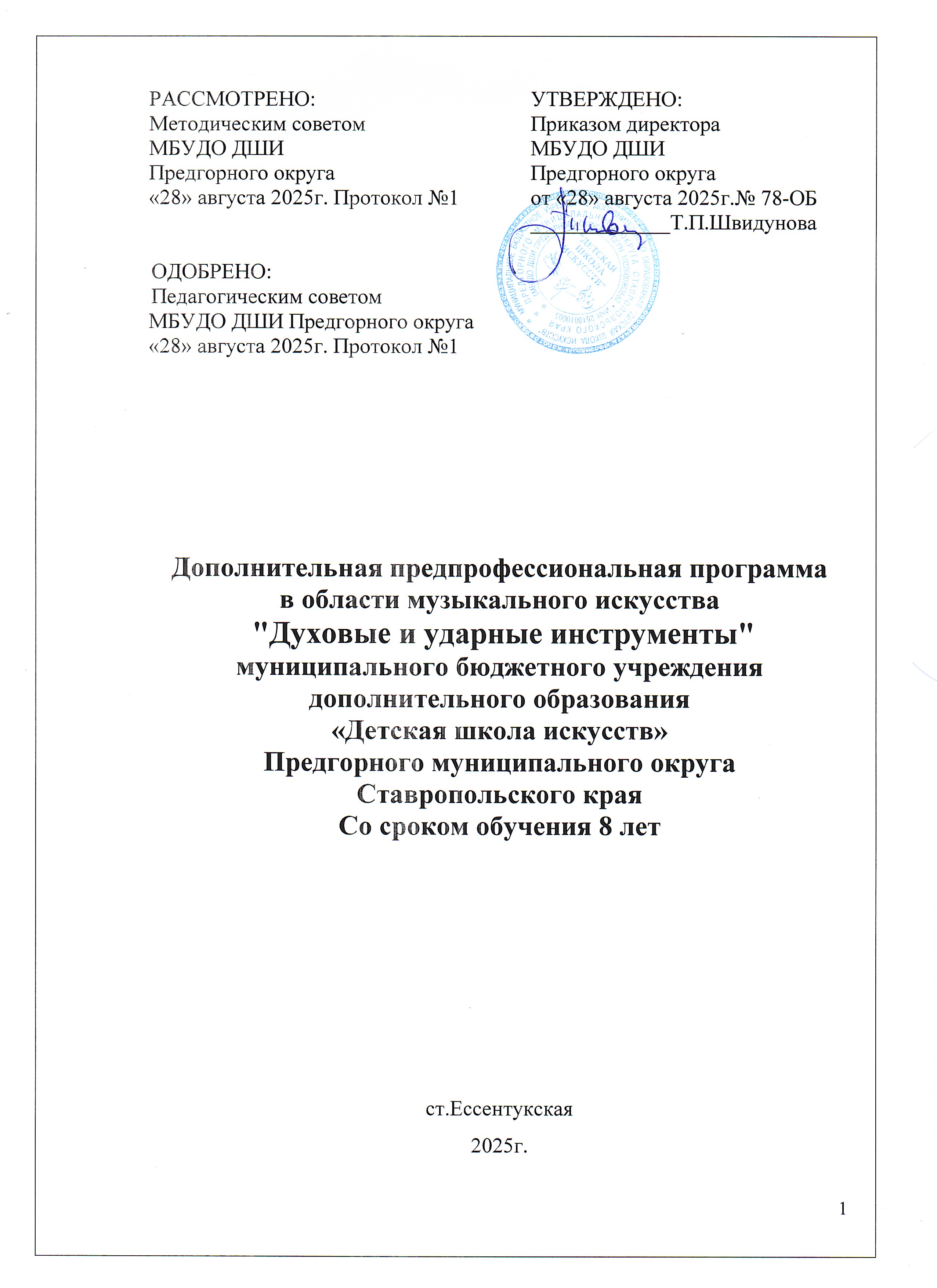 Титульный лист дополнительной предпрофессиональной программы в области музыкального искусства "Духовые и ударные инструменты" со сроком обучения 8 лет