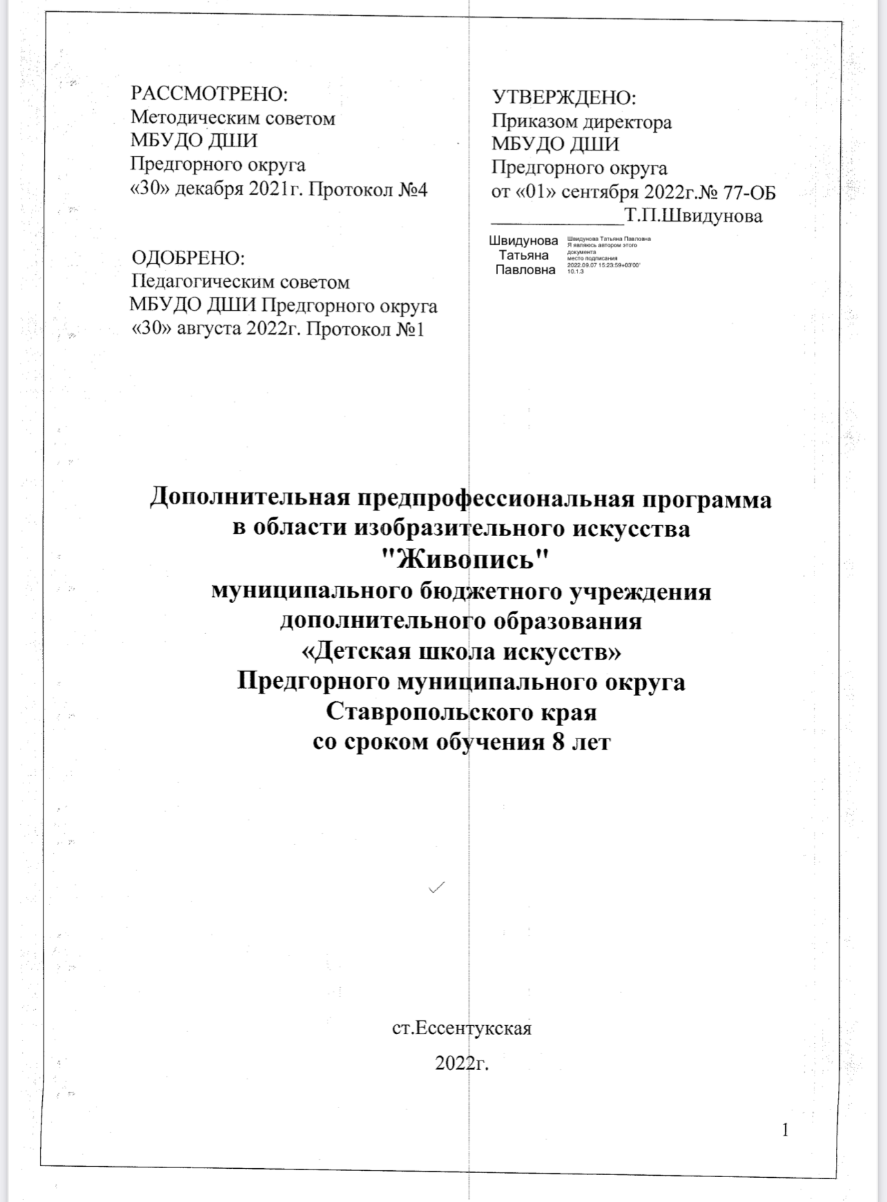 Титульный лист дополнительной предпрофессиональной программы в области изобразительного искусства "Живопись" со сроком обучения 8 лет
