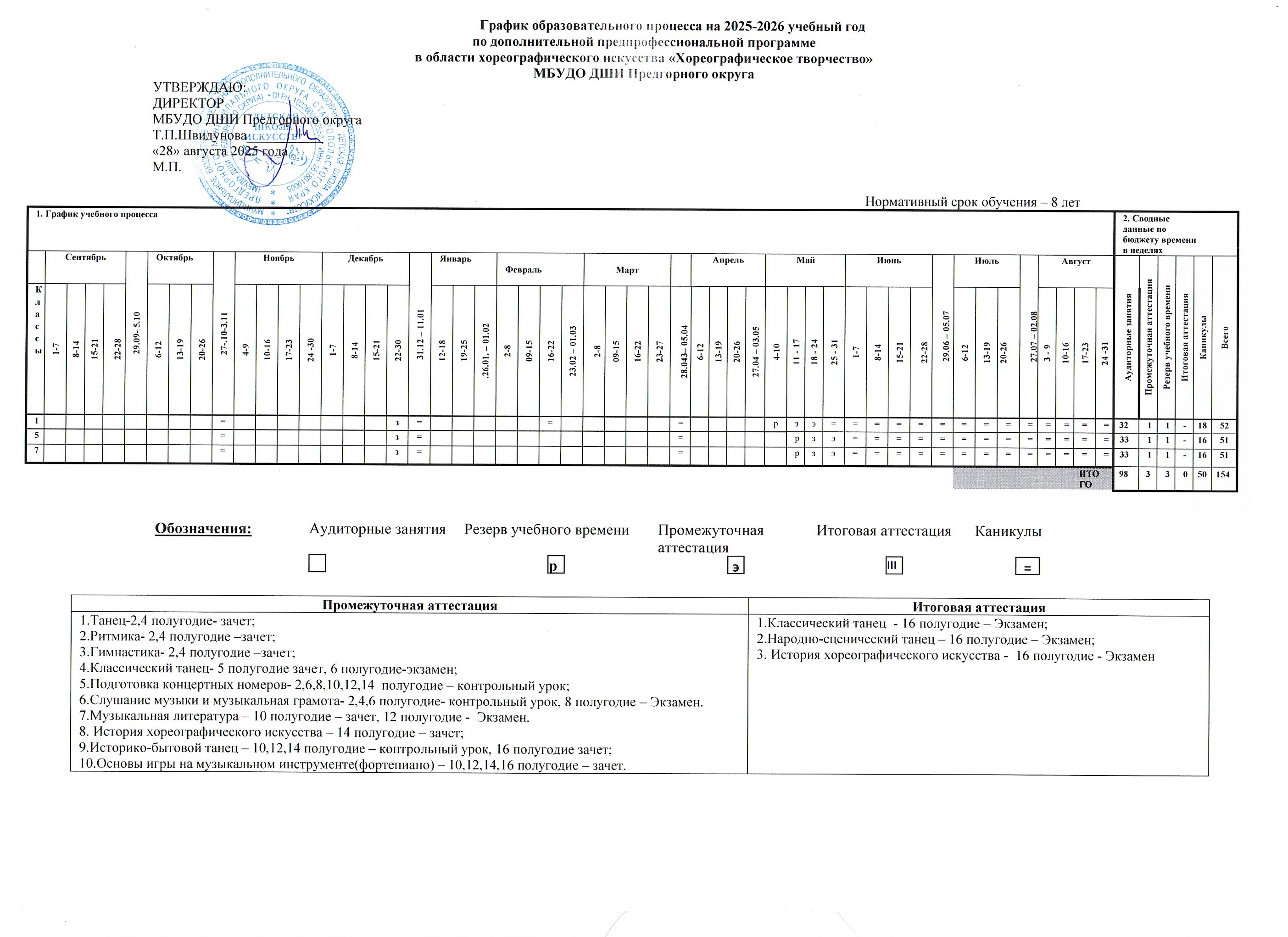 График образовательного процесса дополнительной предпрофессиональной программы в области хореографического искусства "Хореографическое творчество"со сроком обучения 5 лет